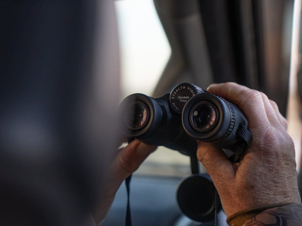 A pair of binoculars with a wide field of view and high magnification can help hunters track their prey more effectively.
